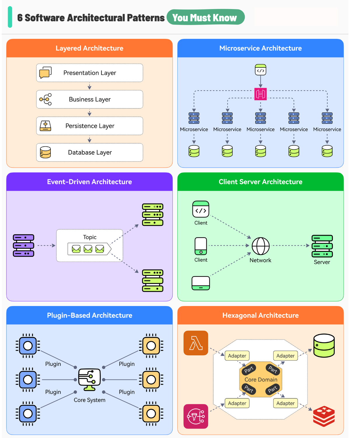 Explore 6 key software architectural patterns for efficient problem-solving.